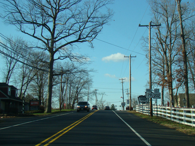 Bridge Street is an east/west street running through New Hope and Lambertville. As its name implies, it crosses a bridge over the Delaware River between Pennsylvania and New Jersey. The section in New Hope is designated PA 179, and it changes designation to become NJ 179 at the state line. Although PA 179 runs east and west, it is considered to a north/south route for consistency with NJ 179 and US 202. The entire length is a two-lane undivided road.