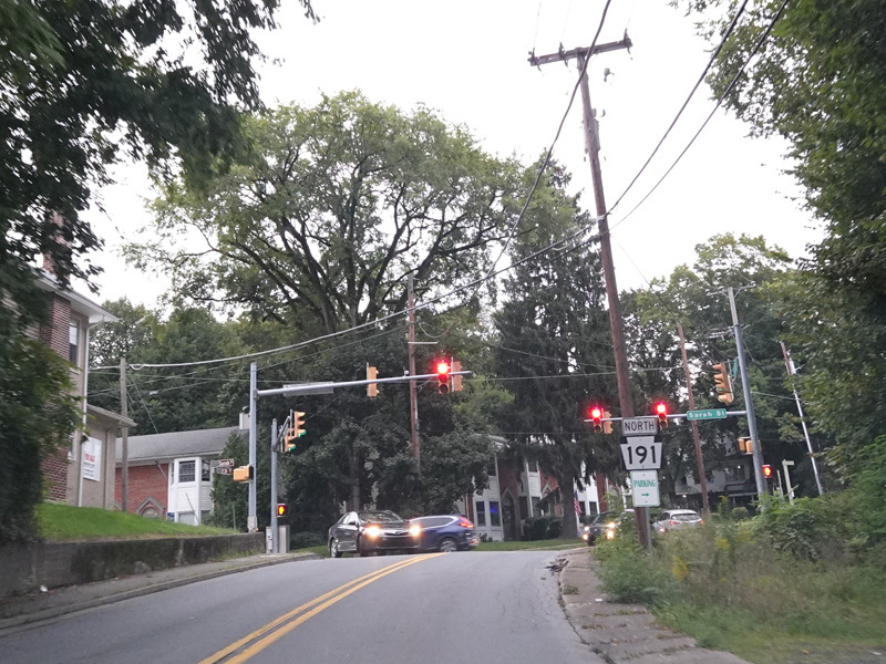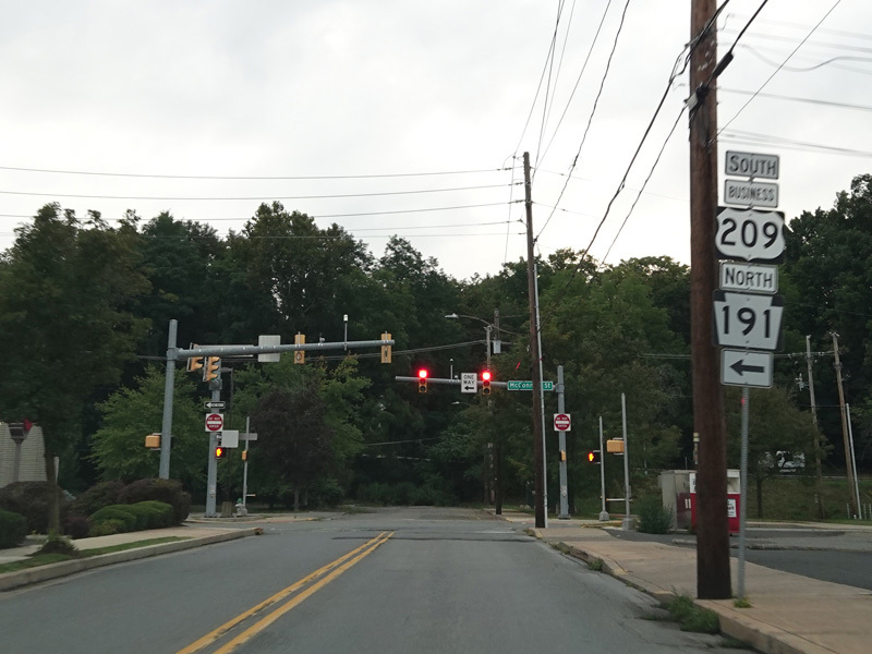 North 4th Street runs north. After one block, there is a traffic light at McConnell Street (Business US 209). All motorists must turn left to go south. To stay on PA 191, turn left and then immediately north onto North 5th Street.