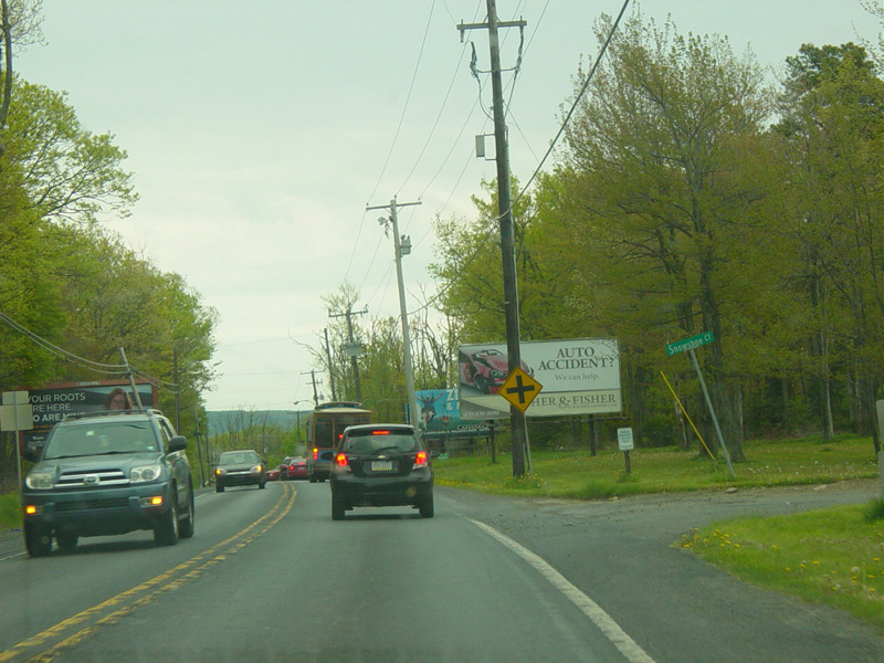 PA 196 runs south to Mount Pocono as a two-lane undivided road. There are traffic lights at Echo Lake Road, Kings Way, and Seven Nations Drive.