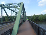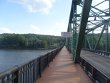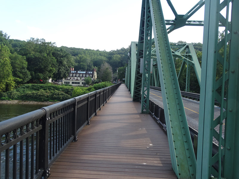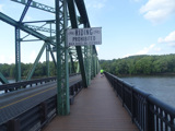 This sign for hikers and bikers is located on the Pennsylvania side of the bridge. It shows the towpath trails for the two canals and the various bridges crossing the river between them.