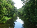 This picture shows the Delaware and Raritan Canal, which is located right next to the river on the New Jersey side.