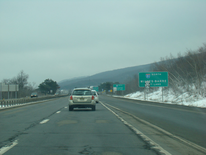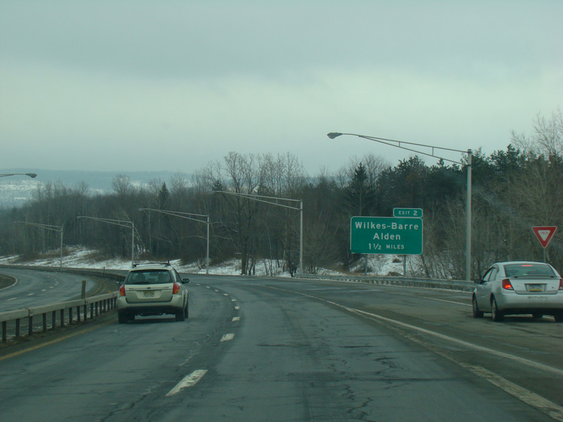 Skipping a substantial distance, the South Cross Valley Expressway begins at US 11 and runs east. There are unnumbered exits for Nanticoke and Wilkes-Barre.