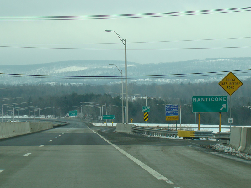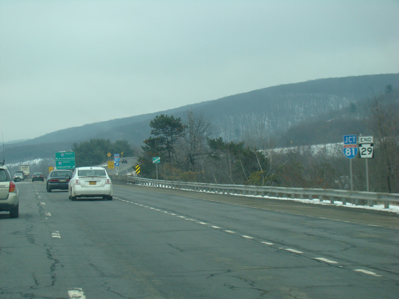 The expressway ends at I-81. Exit to the right to go south or continue straight ahead to go north.