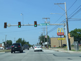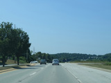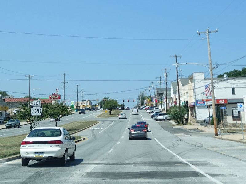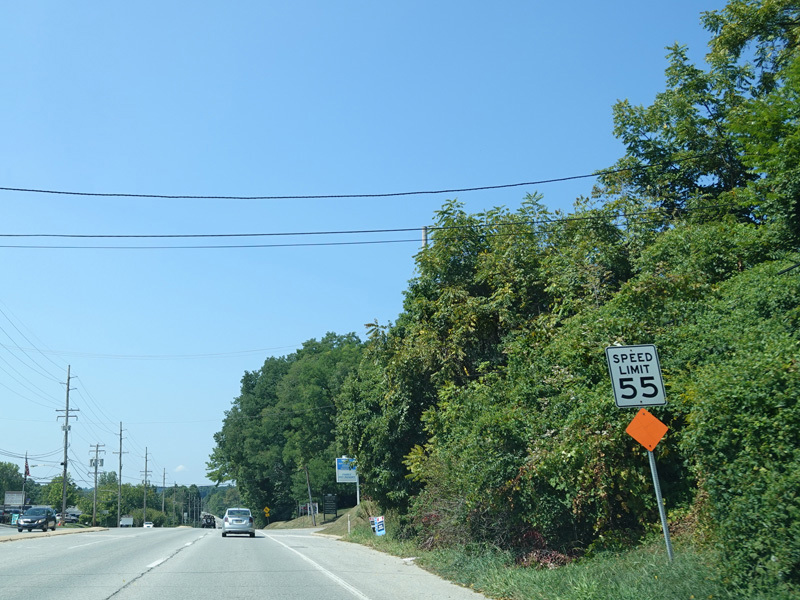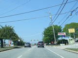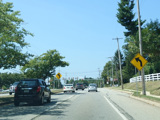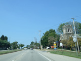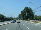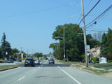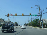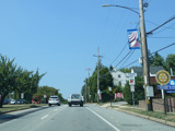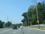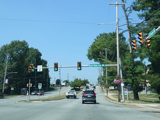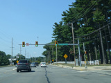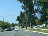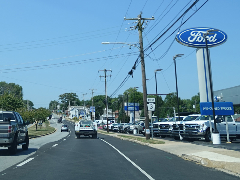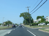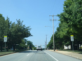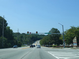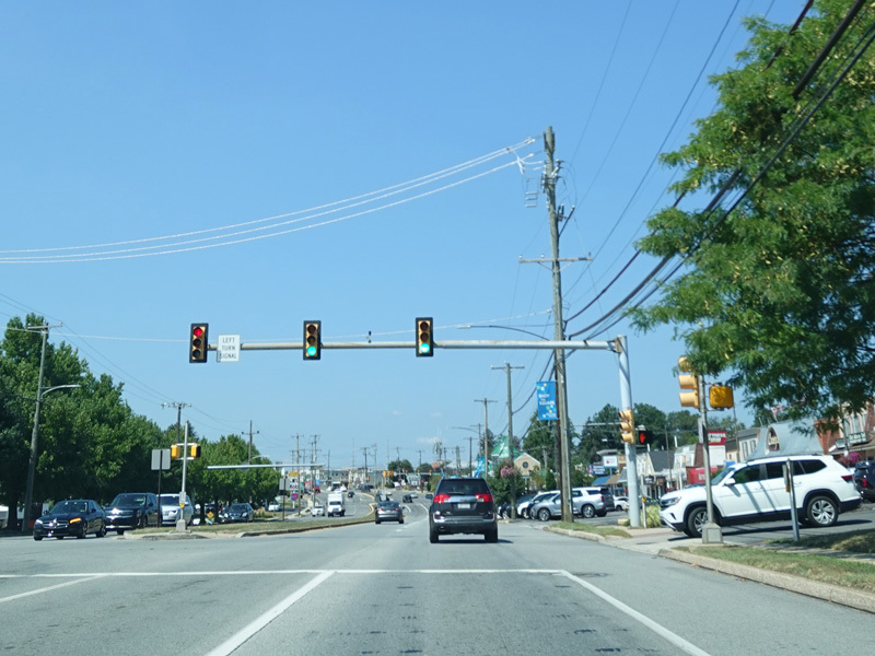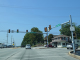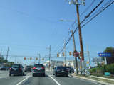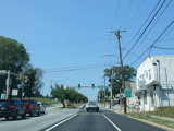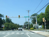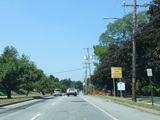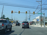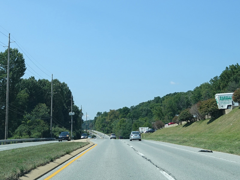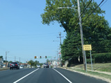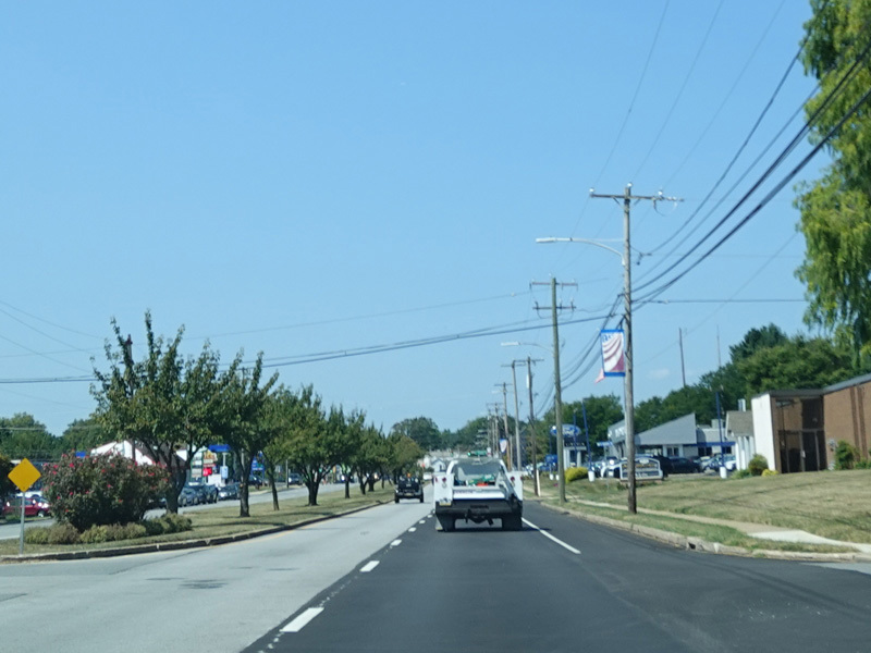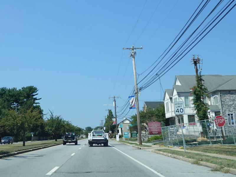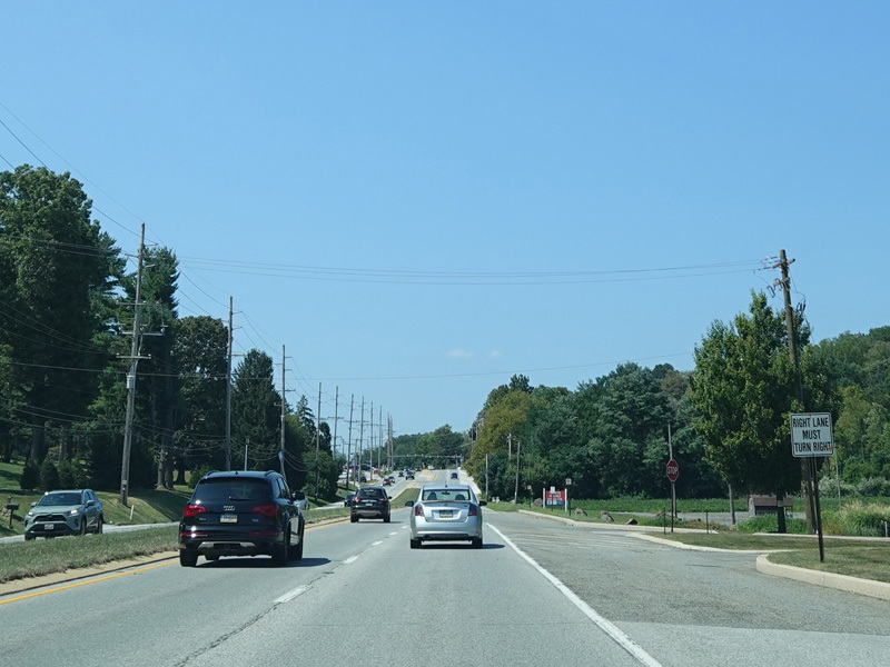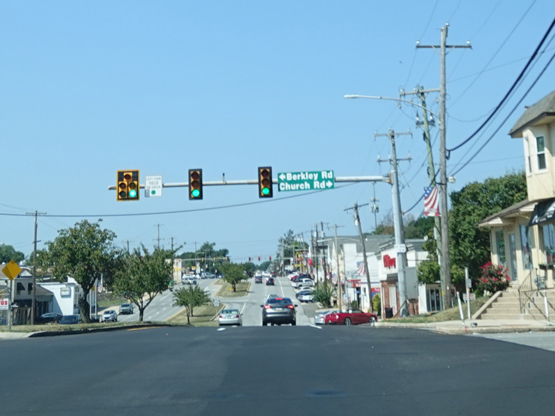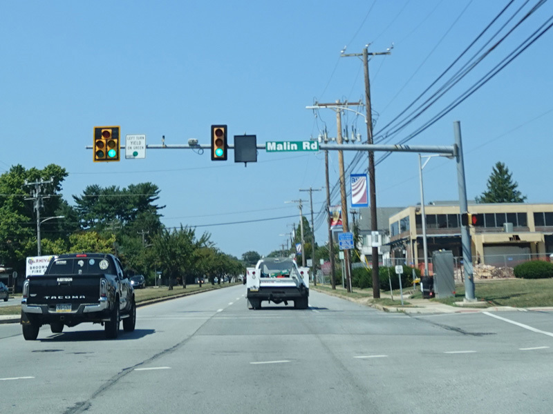 West Chester Pike runs west as a four-lane divided highway. There are traffic lights at Veterans Boulevard, New Ardmore Avenue, Berkley Road, and Church Road.