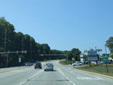 There are traffic lights at Bishop Hollow Road, Clyde Lane, Winding Way, Charles Ellis Drive, Campus Boulevard, and Alice Grim Boulevard.
