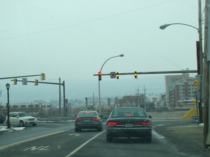 Moosic Street ends here at US 11. Turn left to go south or continue straight ahead to go north. PA 307 is multiplexed with US 11 straight ahead.