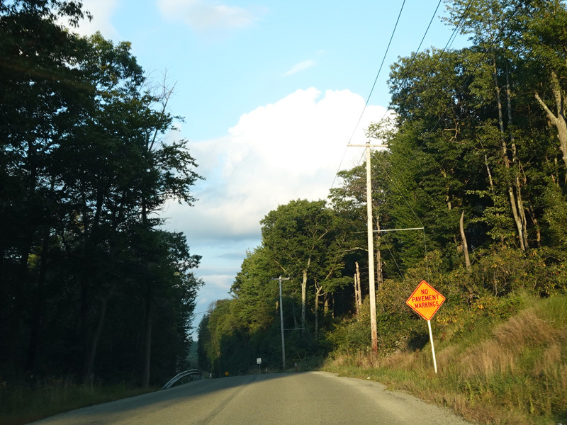 The pavement markings disappear for a while. Apparently, a double yellow line down the middle is too much to expect in this area. Nice going, PennDOT!
