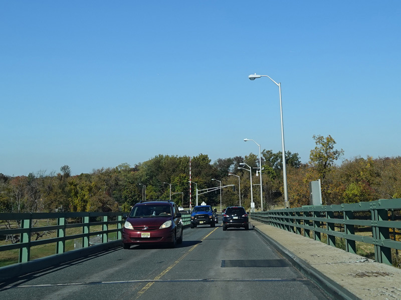 The Burlington-Bristol Bridge crosses the Delaware River from New Jersey to Pennsylvania. At the state line, NJ 413 becomes PA 413.