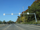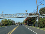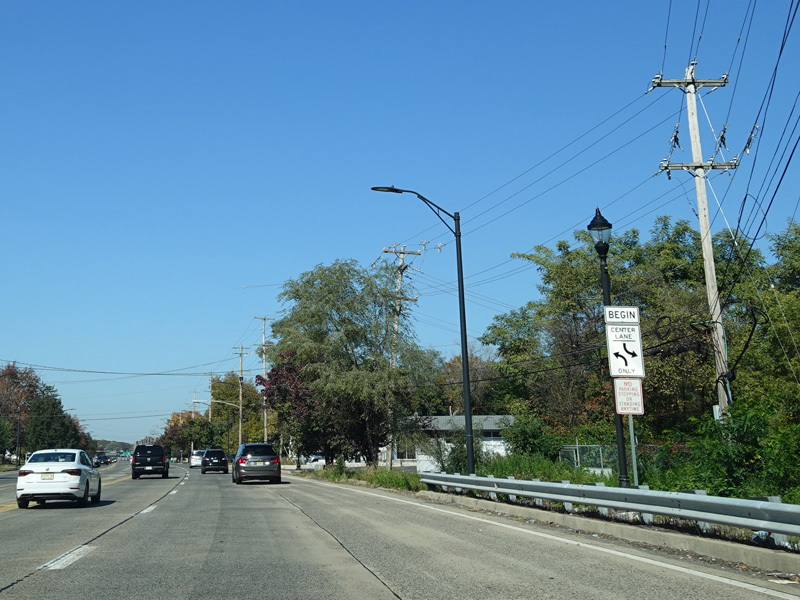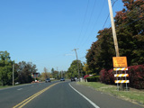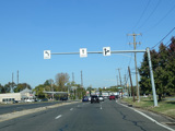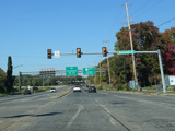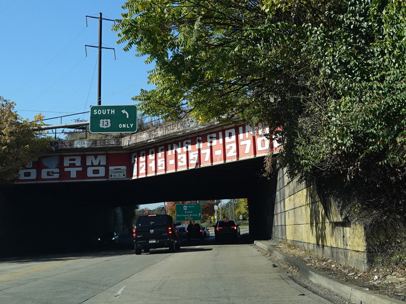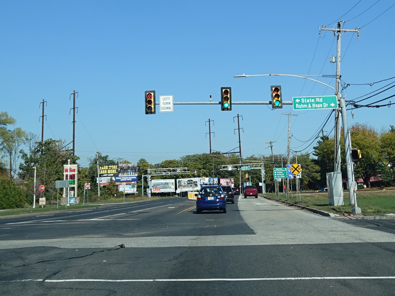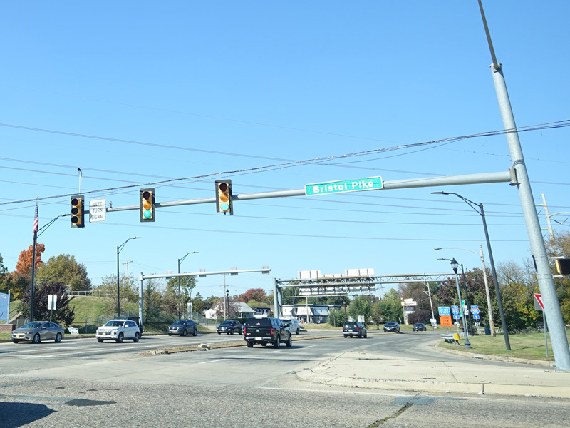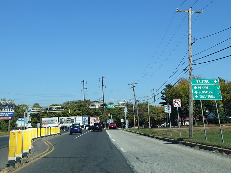 There is a traffic light at Bristol Pike (US 13). Turn right to go north or left to go south.
