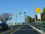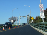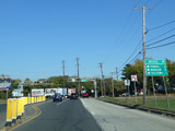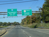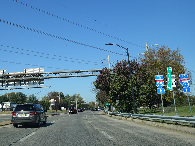 There is an interchange with the Delaware Expressway (I-95). Turn left at the traffic light for both directions.