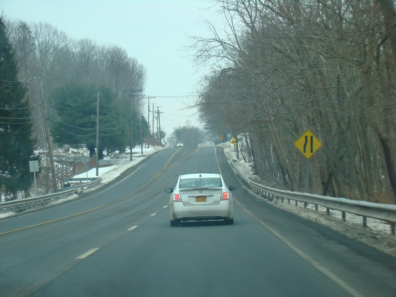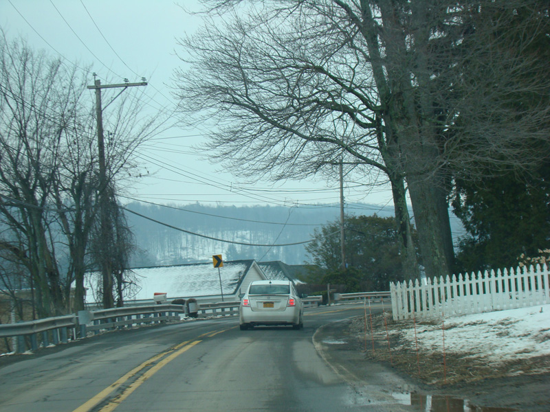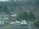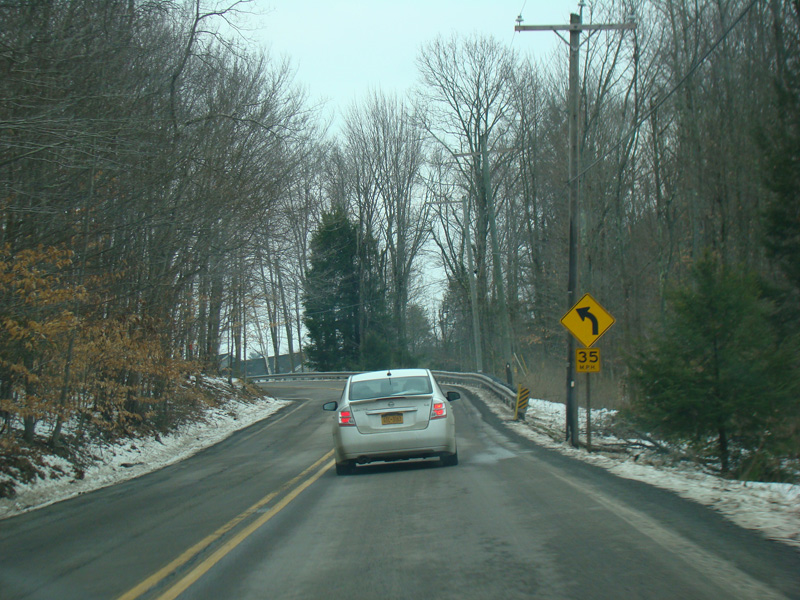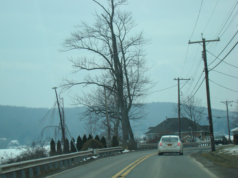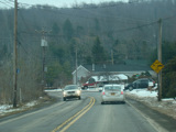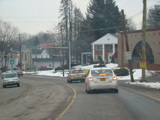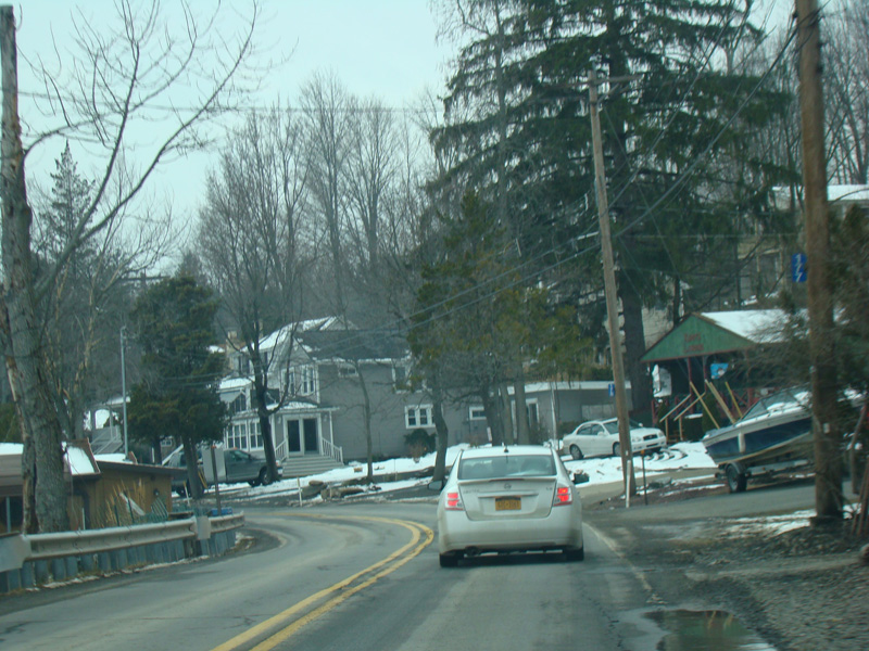 Noxen Road ends here at a stop sign at Lakeside Drive. Turn right to stay on PA 415.