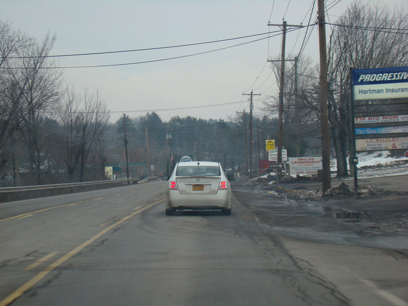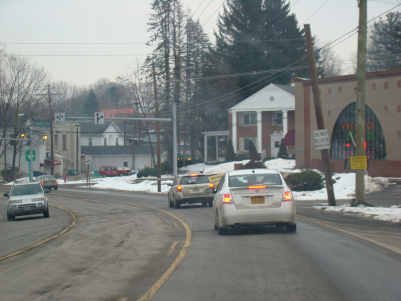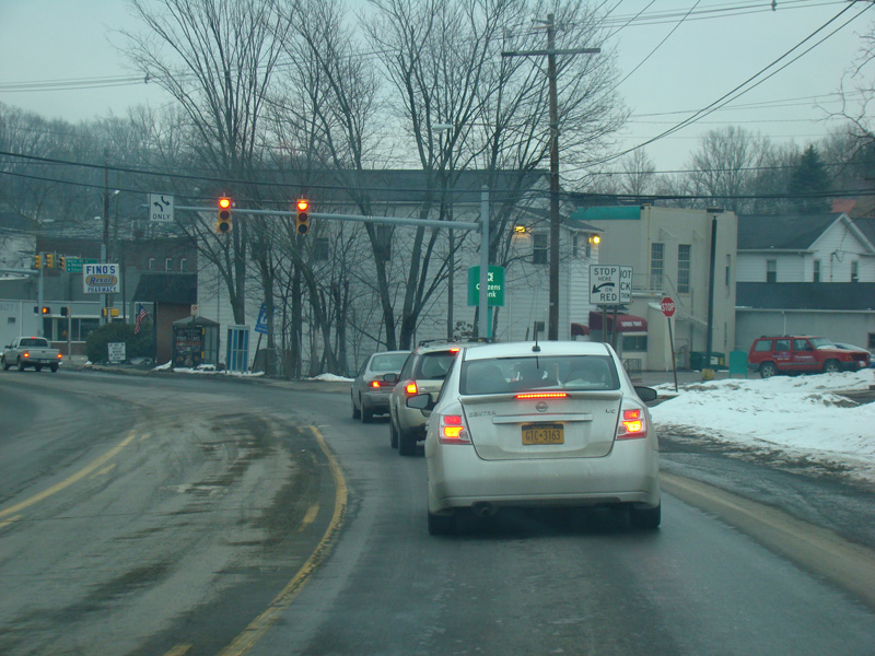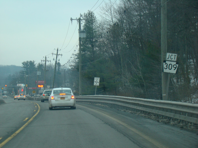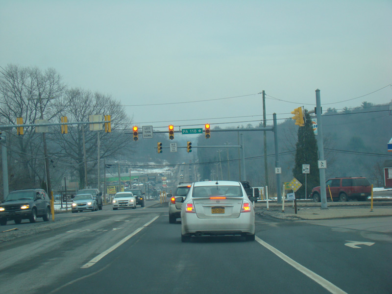 PA 415 ends here at this traffic light at PA 309. Continue straight ahead on Memorial Highway to go south. Turn left onto Tunkhannock Highway to go north.