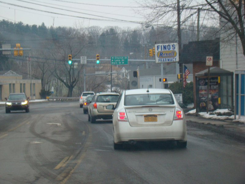 There are traffic lights at Lakeway Manor, Center Hill Road, Church Street, Lake Street, and Main Street.