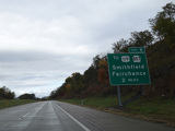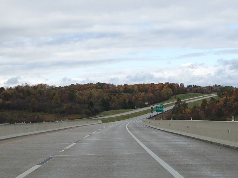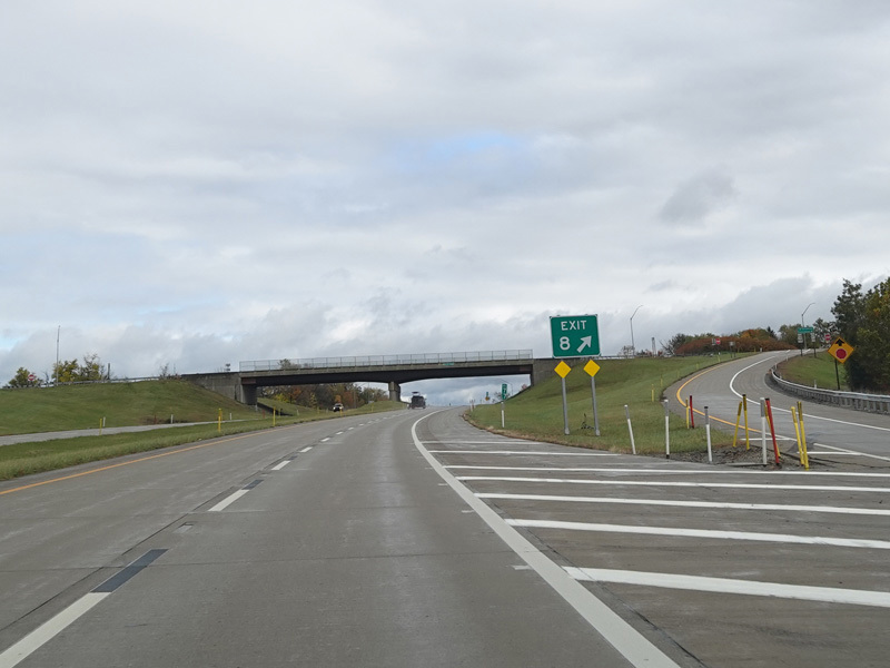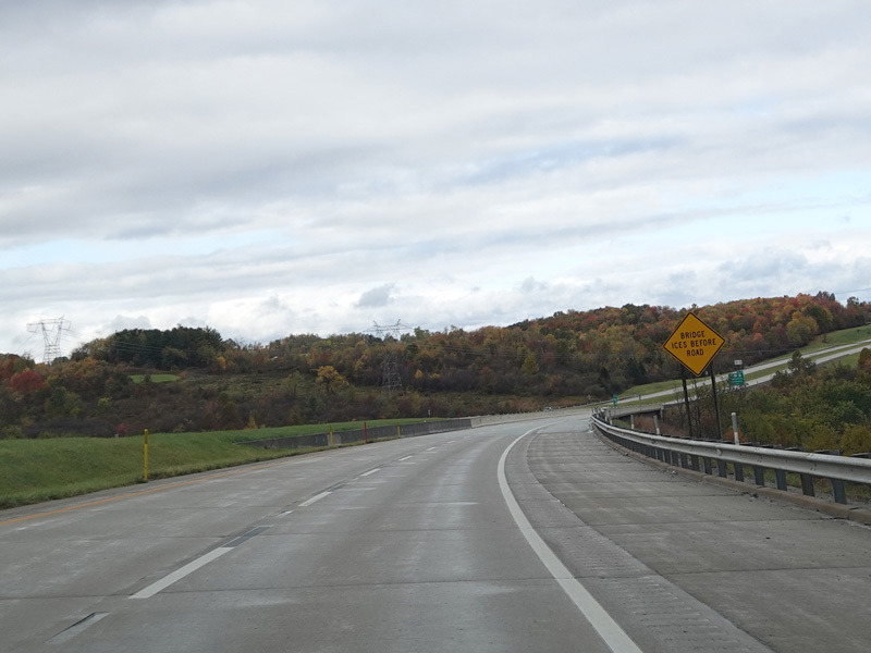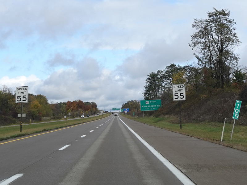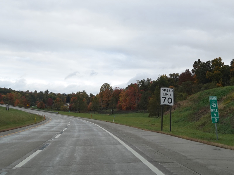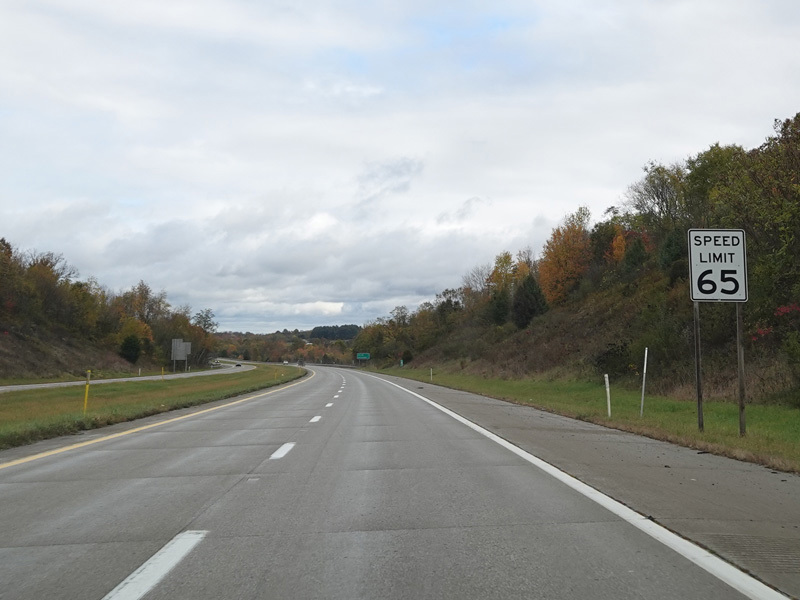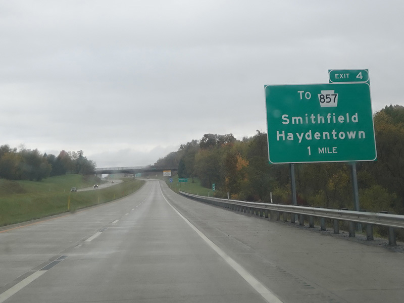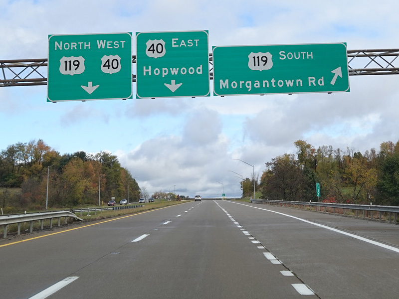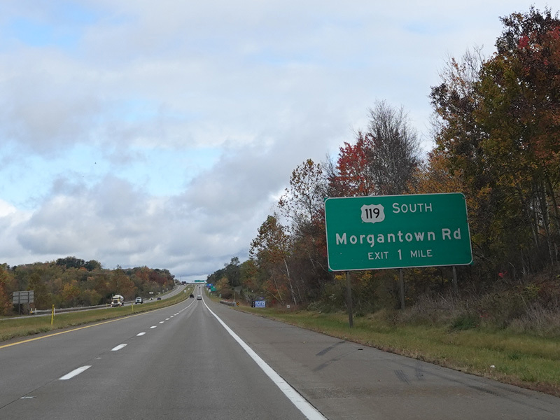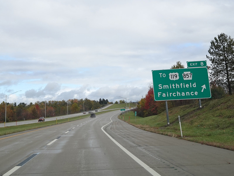 After the tollbooth, the speed limit rises back to 70 MPH. Exit 8 is for US 119 and PA 857.