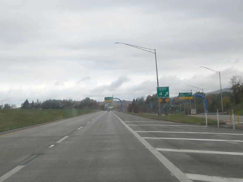 North of exit 4, the speed limit drops to 55 MPH, and there is a tollbooth.