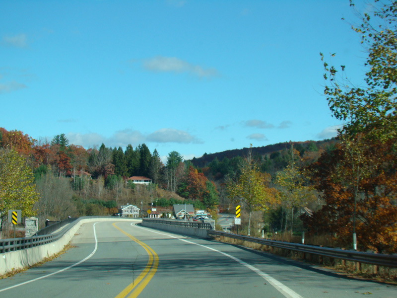 There is a bridge over the Delaware River to New York. PA 434 becomes
