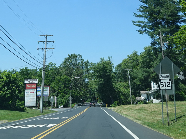 PA 512 is a quarter-circle route in the Lehigh Valley and the Poconos. It begins at the Lehigh Valley Thruway (US 22) in Bethlehem and runs north along Bath Pike to Bath. There, it curves to the northeast to reach Wind Gap, where there is an interchange with the PA 33 expressway. It continues northeast to Mount Bethel, where it ends at North Delaware Drive (PA 611), a little over a mile away from the Delaware River.