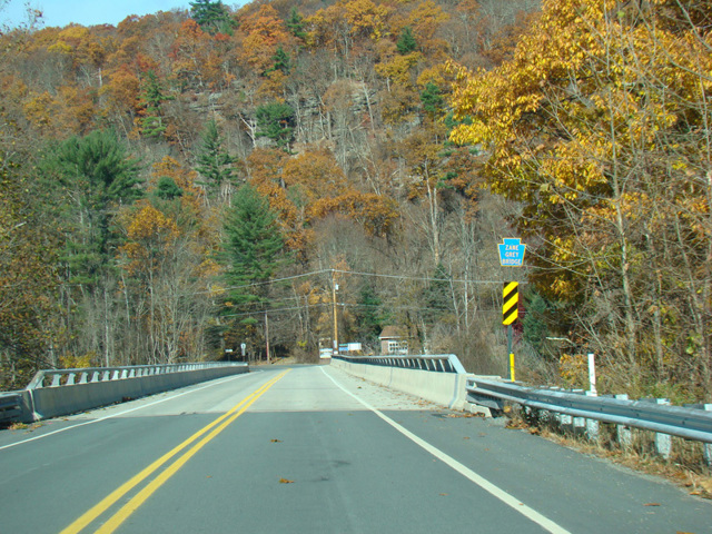 PA 590 is an east/west route in the northeastern area of Pennsylvania. It begins at PA 435 in Elmhurst Township, just south of I-84, and runs east to Hawley. It is multiplexed with US 6 along Bellemonte Avenue and Main Avenue through Hawley. It then follows the Lackawaxen River east to Lackawaxen, where the Lackawaxen River empties into the Delaware River at the border with New York. PA 590 curves to the south to stay in Pennsylvania, crossing the Lackawaxen River on the Zane Grey Bridge. It runs south for a few miles to Greeley, where it ends at PA 434.