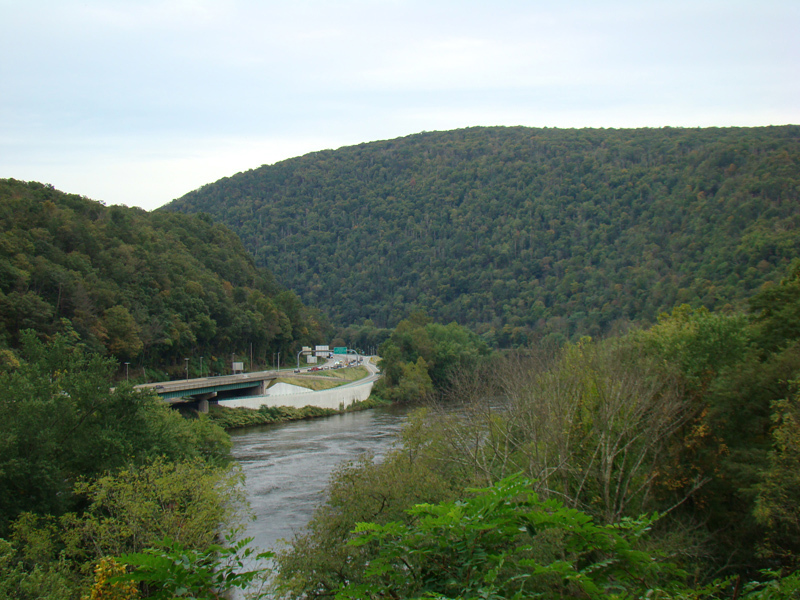 These pictures were taken from the scenic overlooks along North Delaware Drive at the Delaware Water Gap. The bridge carrying I-80 over the Delaware River is visible from the Resort Point Overlook.