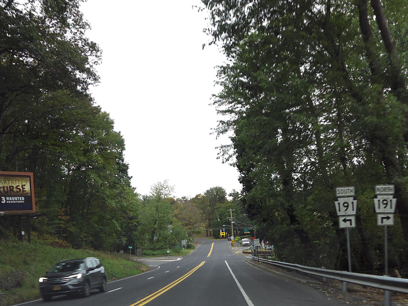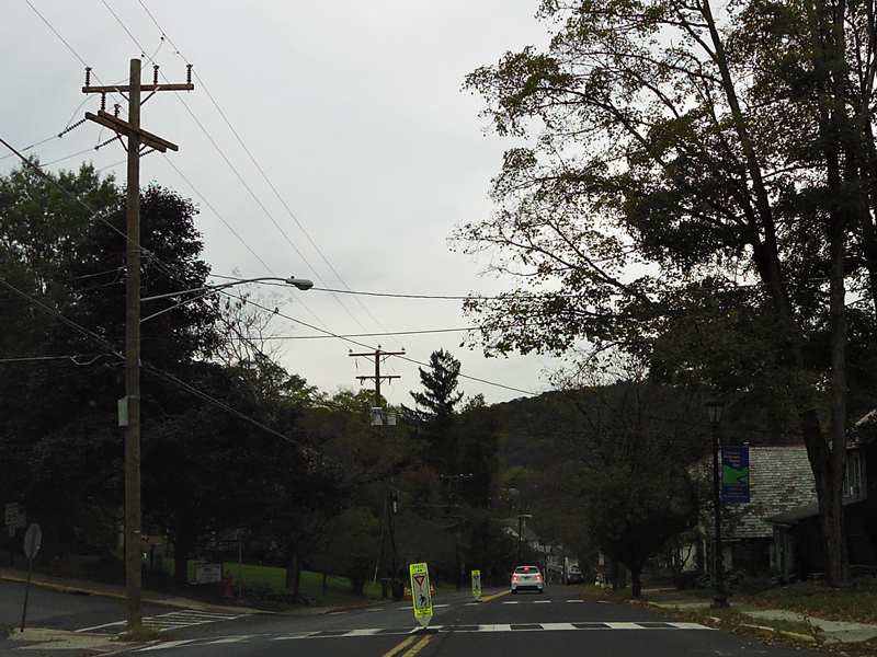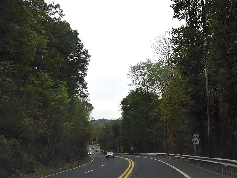 At the bottom of the hill, there is an uncontrolled intersection at PA 191. Turn right onto Broad Street to go north or left onto Banger Mountain Road to go south.