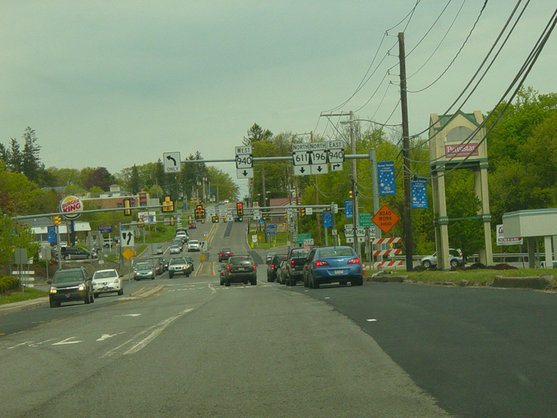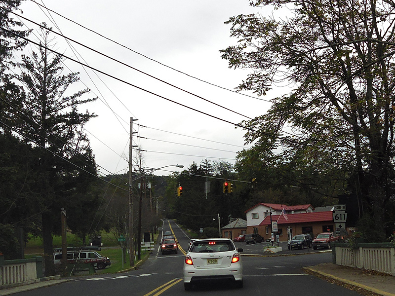 PA 611 continues west to Tannersville. There are traffic lights at Rimrock Road, Bartonsville Avenue, Warner Road, and Cherry Lane Road.