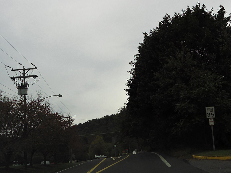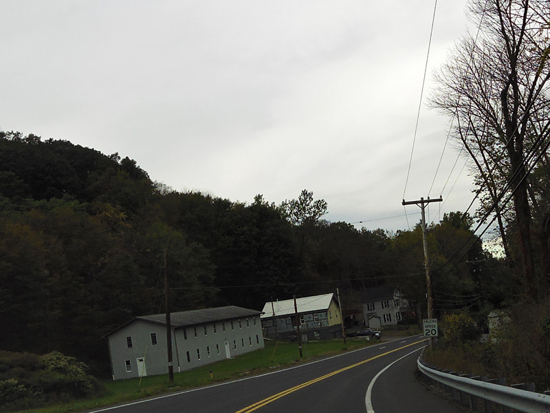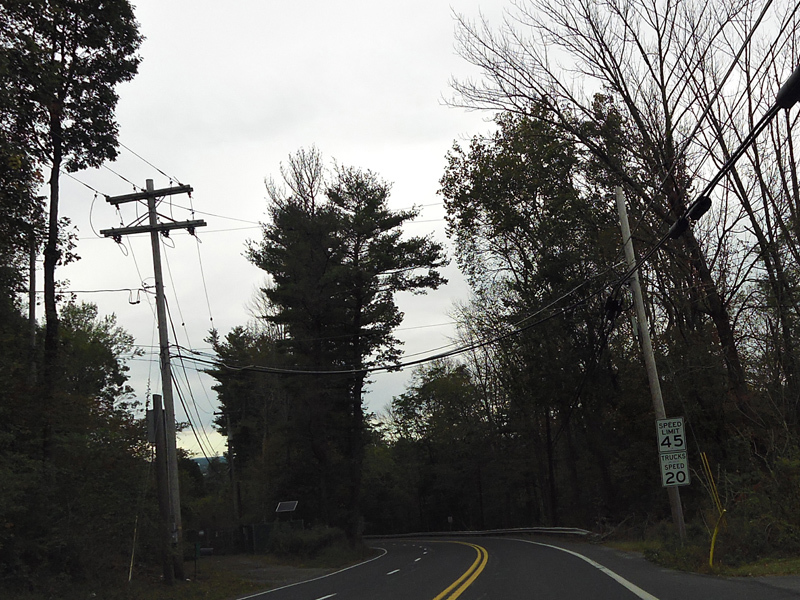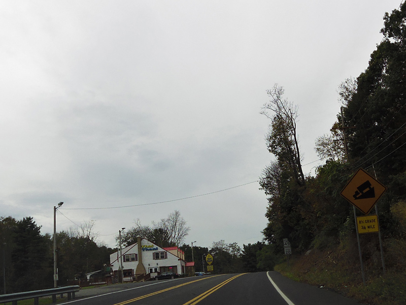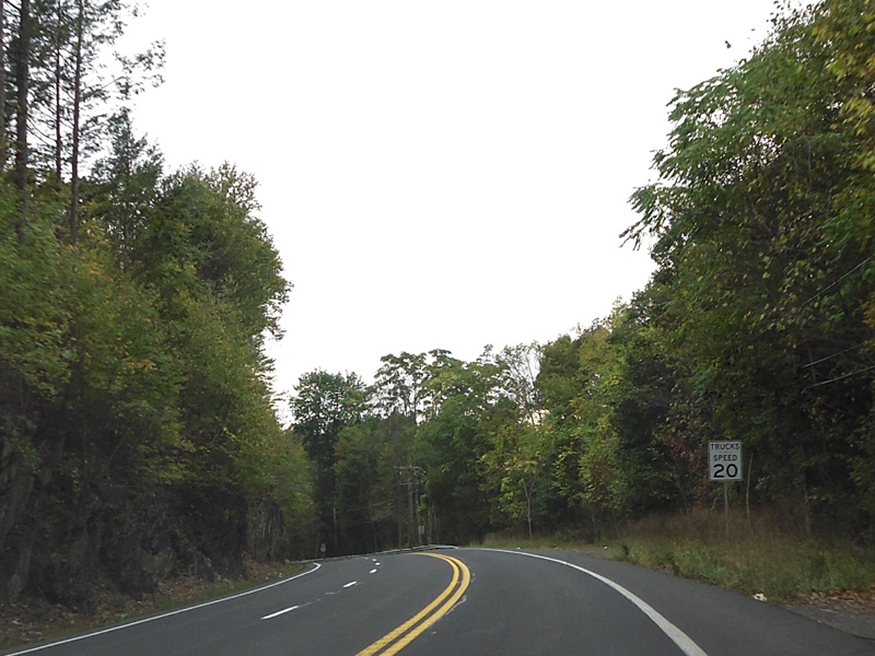 Heading down the other side of the hill, there is a truck speed limit of 20 MPH. Don't get stuck behind a truck here!