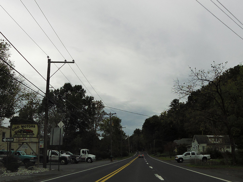 Skipping north to Mount Pocono, Pocono Boulevard runs north as a two-lane undivided road.