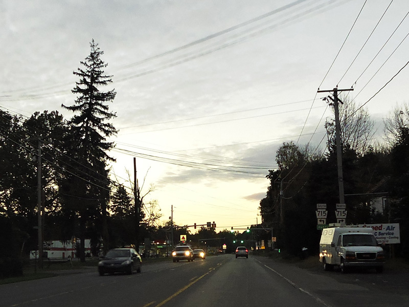 PA 715 is multiplexed with PA 611 for one block here. Turn right at the first traffic light to go north. Turn left at the second traffic light to go south.