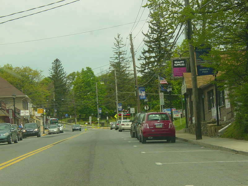 Coming into Delaware Water Gap, the speed limit drops to 25 MPH. Here, PA 611 is known as Main Street. Turn right onto Broad Street for access to I-80.