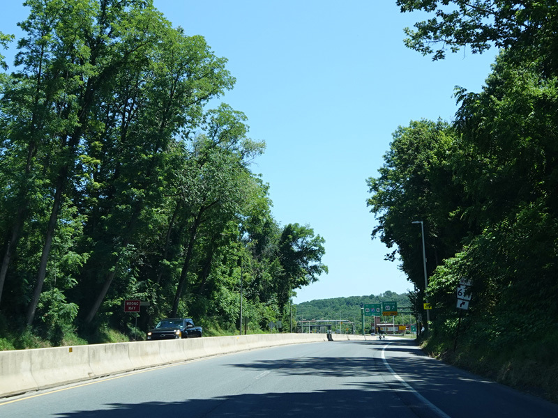 North Delaware Drive passes under the bridge. There is an entrance ramp on the left to head back south.
