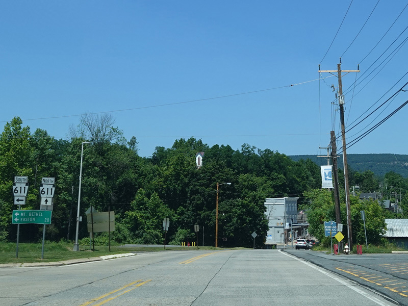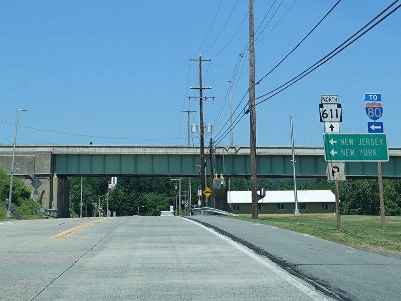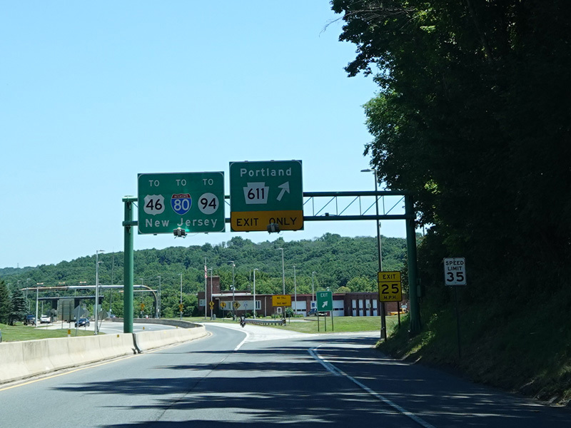North Delaware Drive widens becomes a four-lane divided highway and then splits. Take the exit to the right to stay on PA 611. Continue straight ahead for the NJ 94 bridge over the Delaware River.