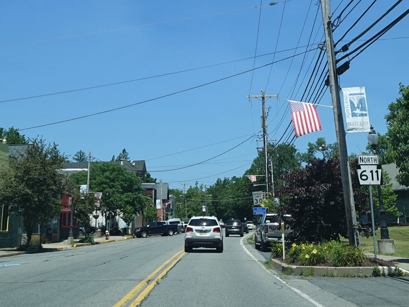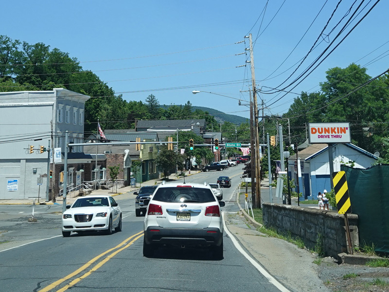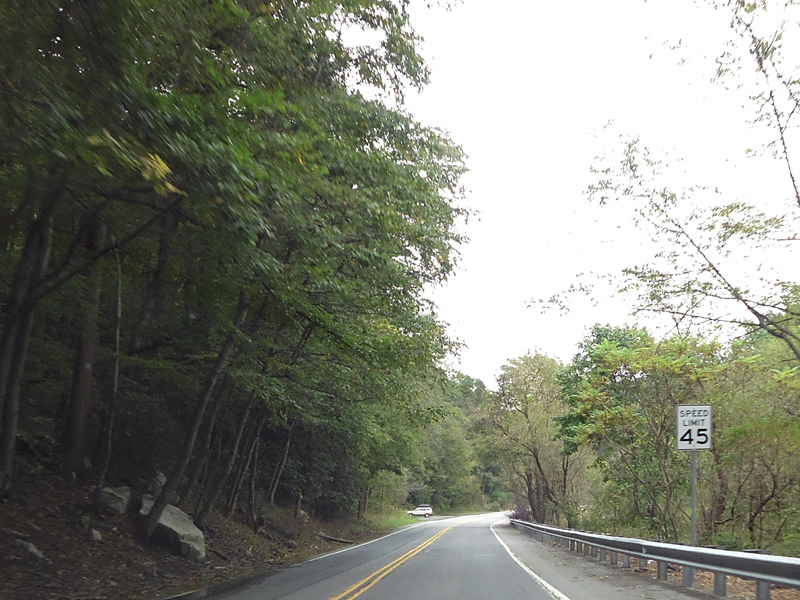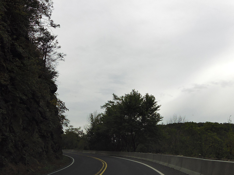 Heading out of town, the speed limit goes up to 55 MPH. North Delaware Drive runs along the Delaware River.