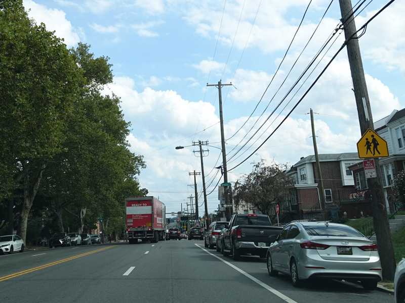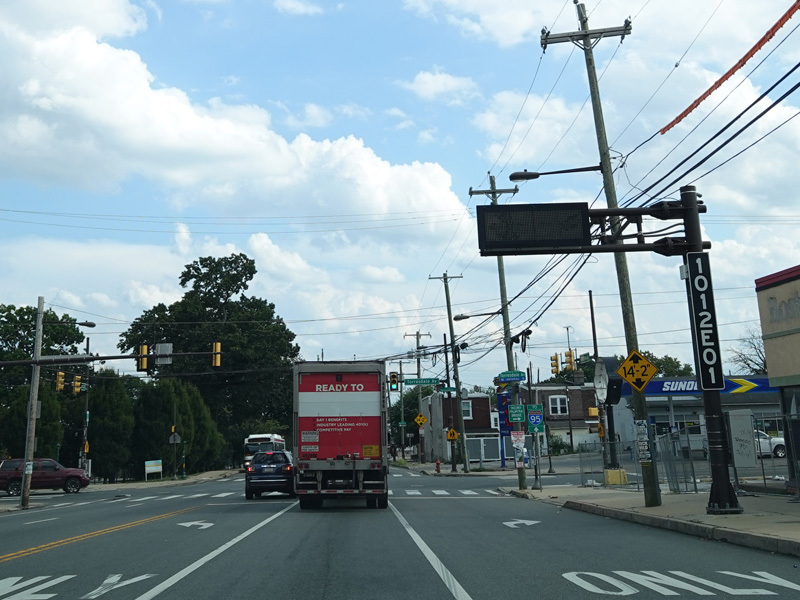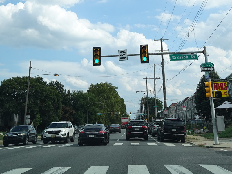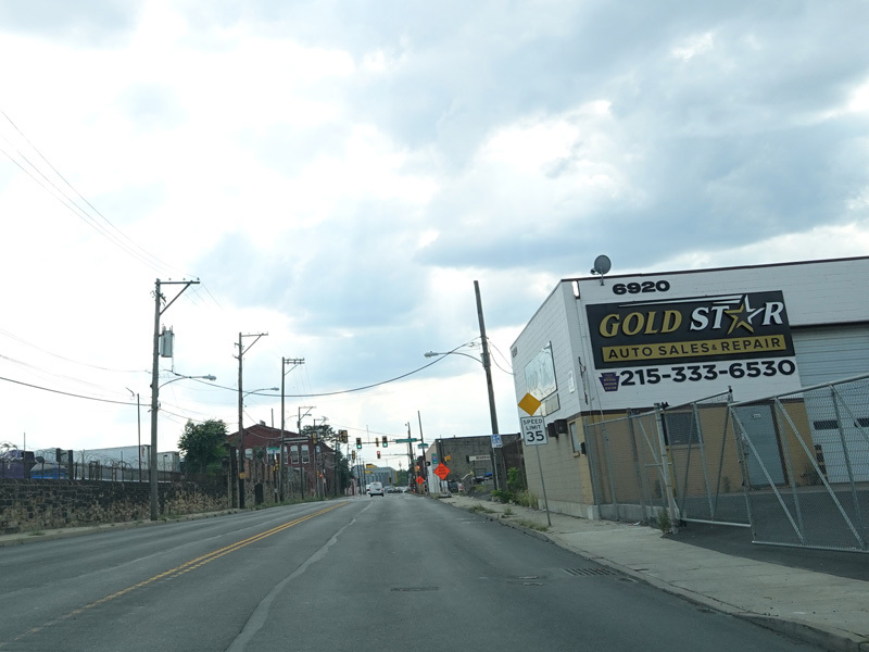 Cottman Avenue is now a two-lane undivided road. There is a traffic light at Edmund Street.