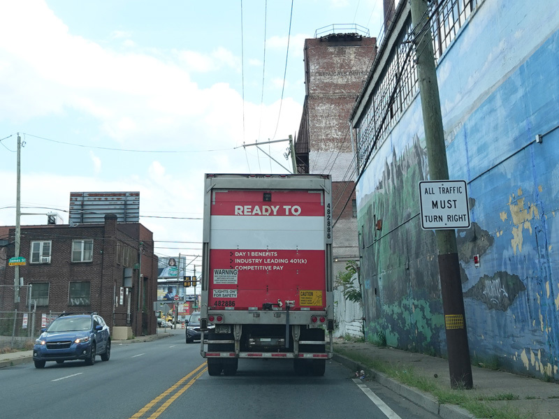 Bear right here to get on the Tacony-Palmyra Bridge, staying on PA 73. This is the last turn in Pennsylvania.