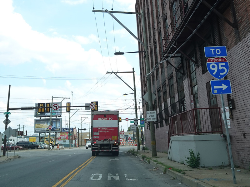 There is a traffic light at Princeton Avenue. Turn left here for access to the Delaware Expressway (I-95) north.