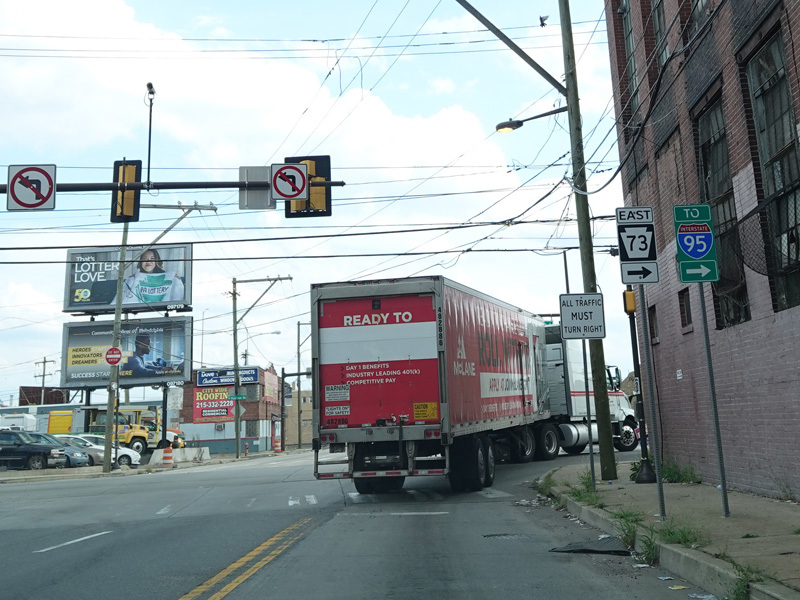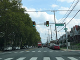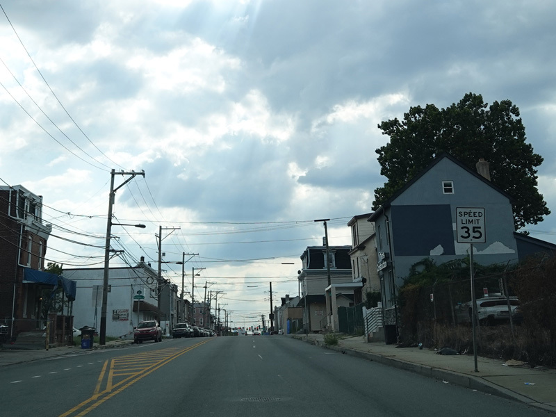 There is a traffic light at Torresdale Avenue. The left lane drops out here, becoming a left turn lane.