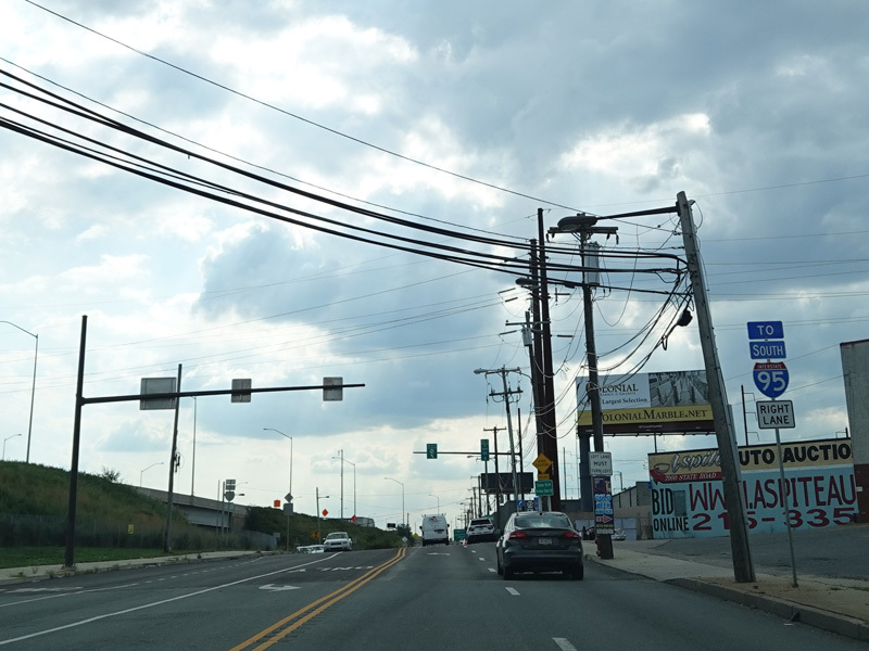 There is a traffic light at Longshore Avenue. Turn right here for access to the Delaware Expressway (I-95) south.