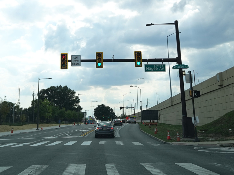 New State Road continues south as a four-lane undivided road. There is a traffic light at Magee Avenue.