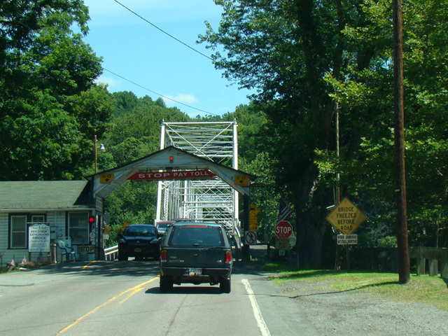 PA 739 is a diagonal north/south route extending from Dingmans Ferry to Hawley. It enters Pennsylvania from New Jersey on the Dingmans Bridge, a narrow toll bridge over the Delaware River that is unusual in that it is owned and operated by a private company rather than a government agency. PA 739 runs northwest to Lords Valley, where it has an interchange with I-84, and then north to Hawley, where it ends at US 6.