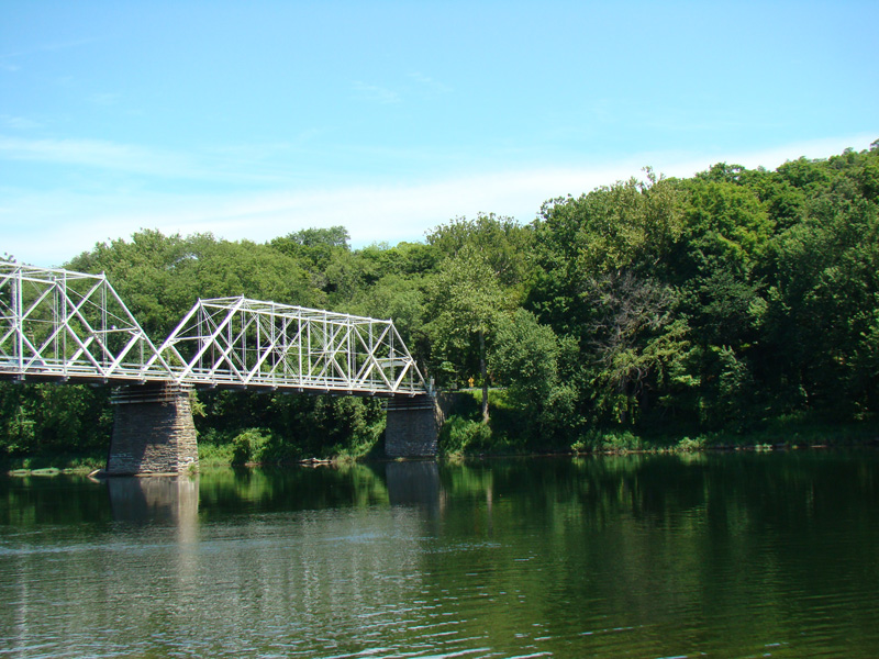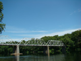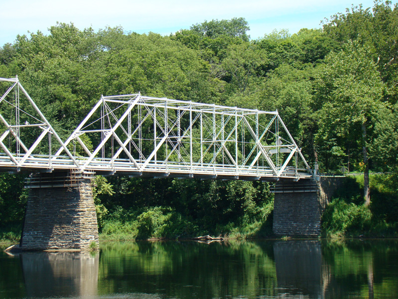 These pictures show the Dingmans Bridge as observed from along the Delaware River in Dingmans Ferry, Pennsylvania.