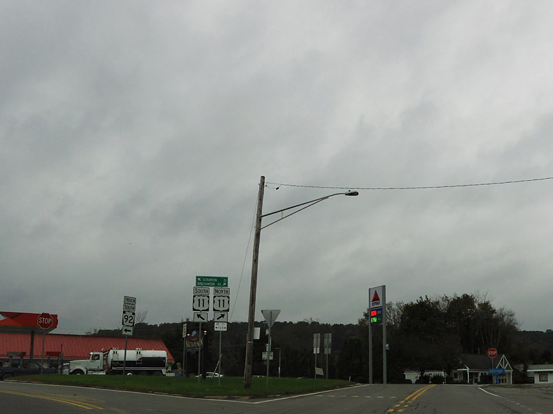 The ramp from State Street to Lackawanna Trail (US 11) in Nicholson splits. Bear right to go north or left to go south.