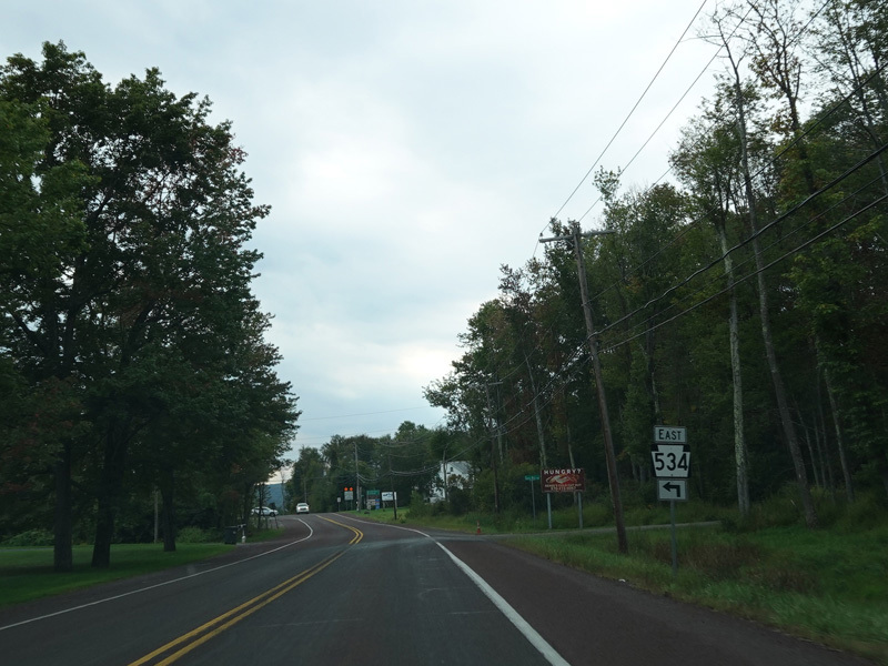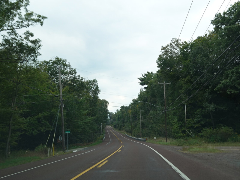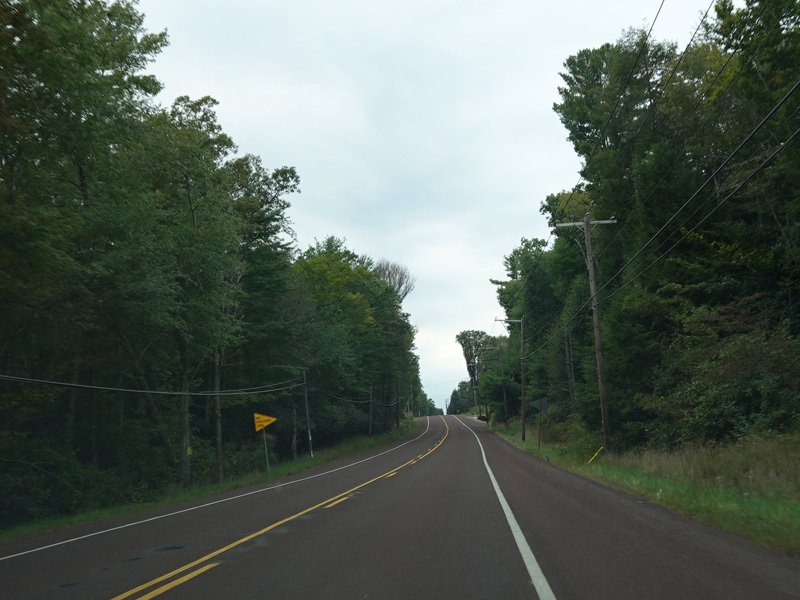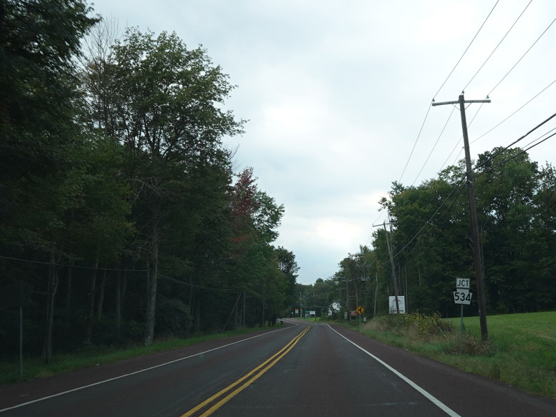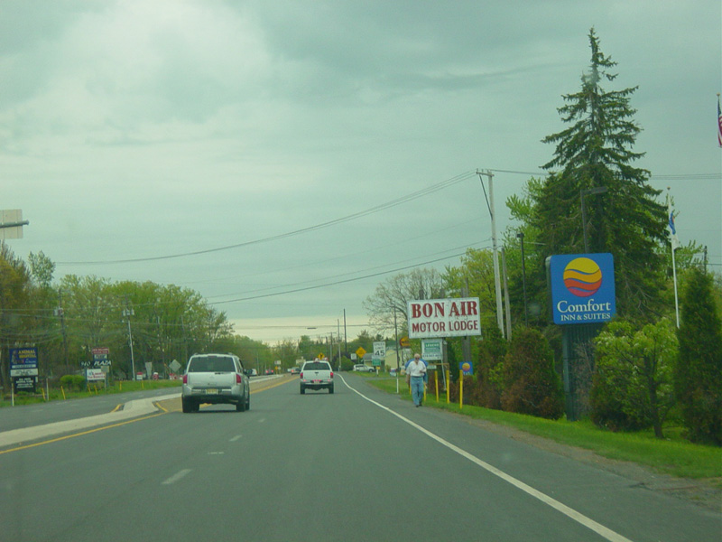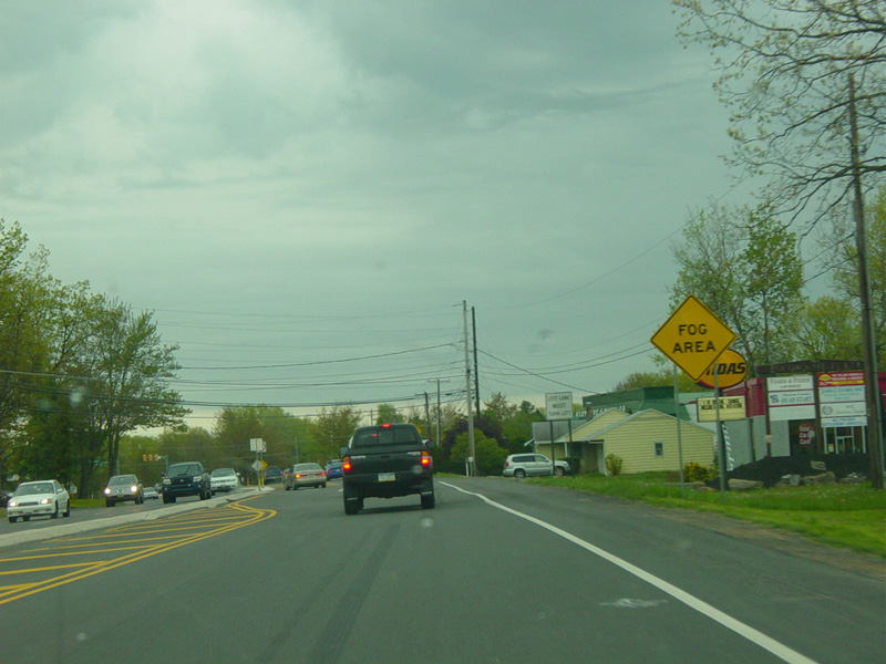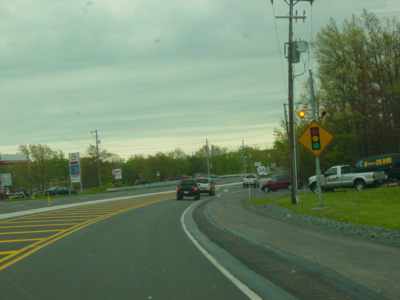 Pocono Summit Road narrows down to two lanes but remains divided. There are traffic lights at Commerce Street, Summit Avenue, and Harvest Lane. There is misleading signage that might be misread to imply that Harvest Lane is PA 314, although it is just a local street.