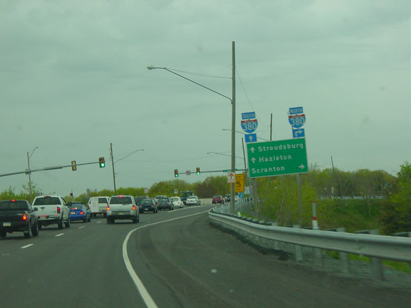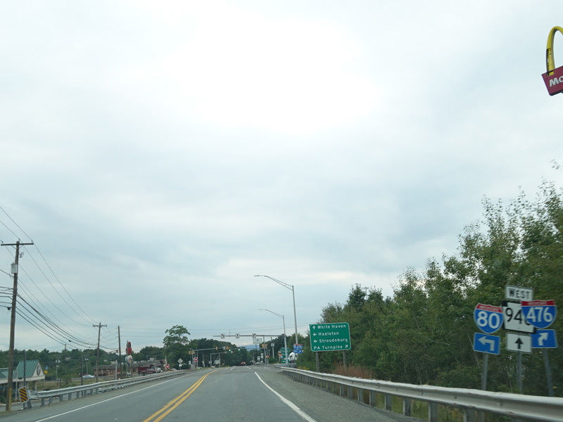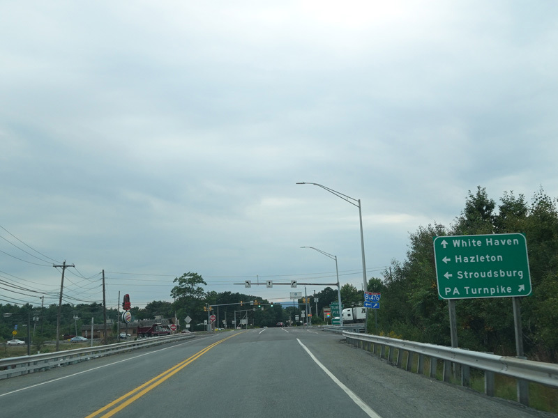Skipping a number of miles to the west, there is an interchange with the Keystone Shortway (I-80) and the Northeast Extension of the Pennsylvania Turnpike (I-476).