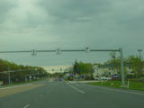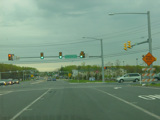 The divider ends. There is a traffic light at Long Pond Road and Stillwater Drive.