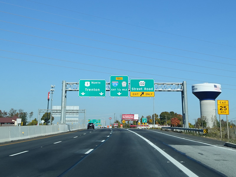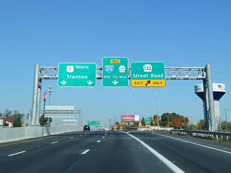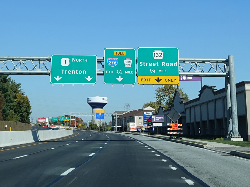 US 1 becomes an expressway for the remainder of its length in Pennsylvania. There is an exit for Street Road (PA 132).