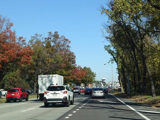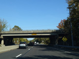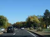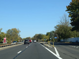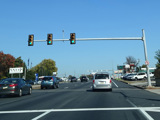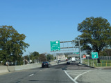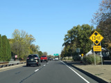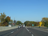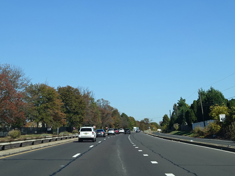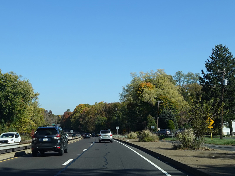 Skipping north to the city line, the service roads end and merge into Roosevelt Boulevard, which continues north as a three-lane divided highway. There are a couple of traffic lights.