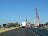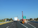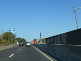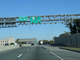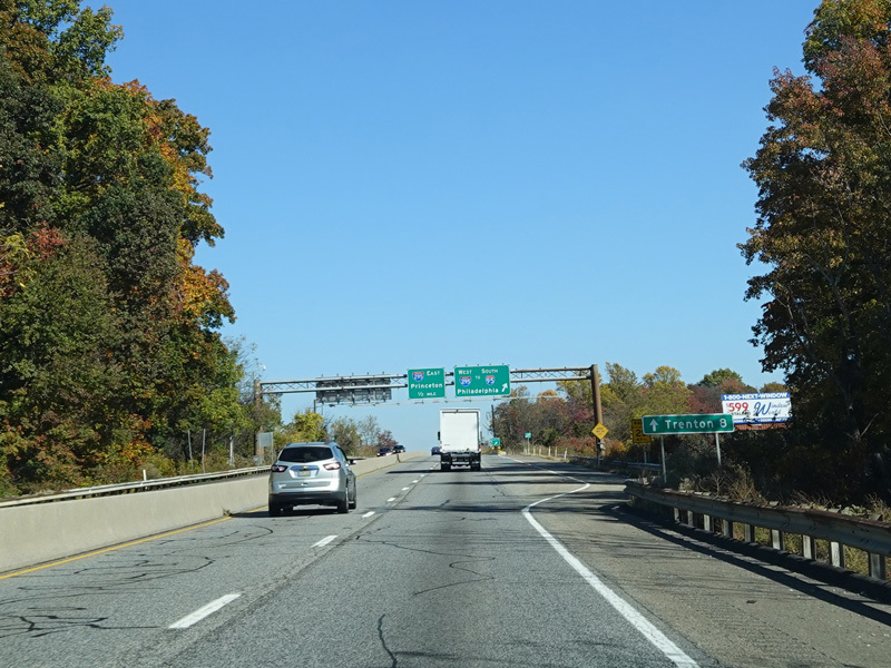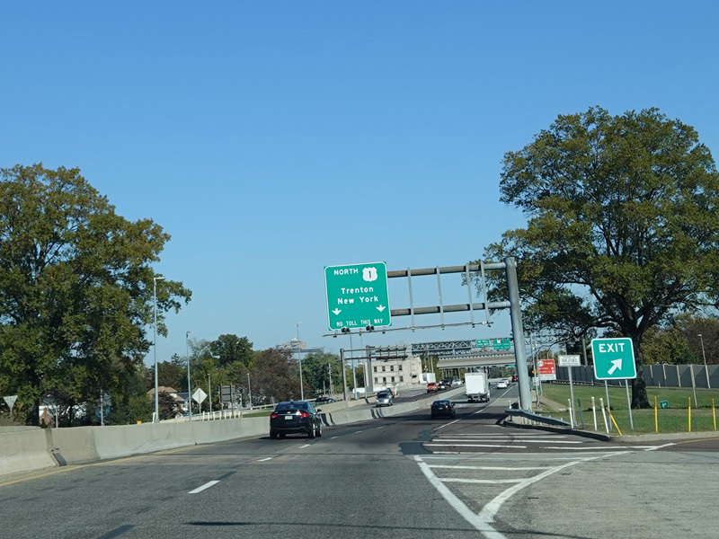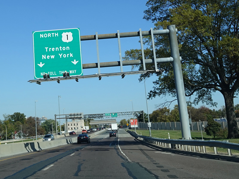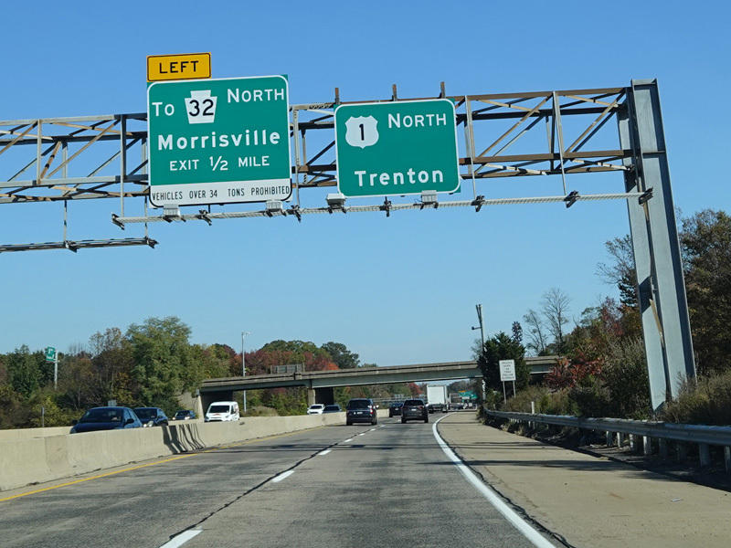 Straight ahead, US 1 crosses the Delaware River to Trenton, New Jersey. It continues on the other side as the Trenton Freeway.