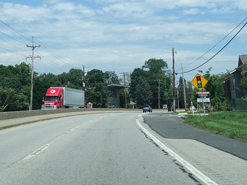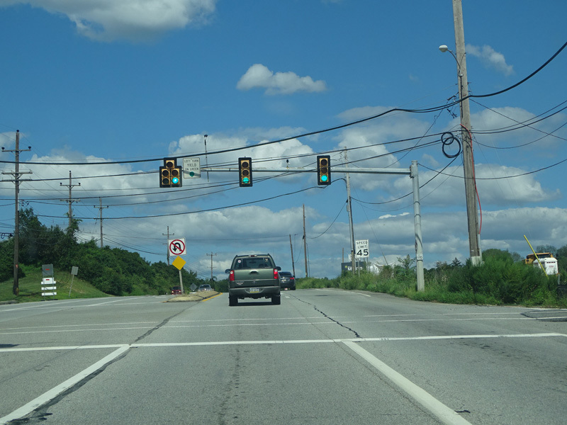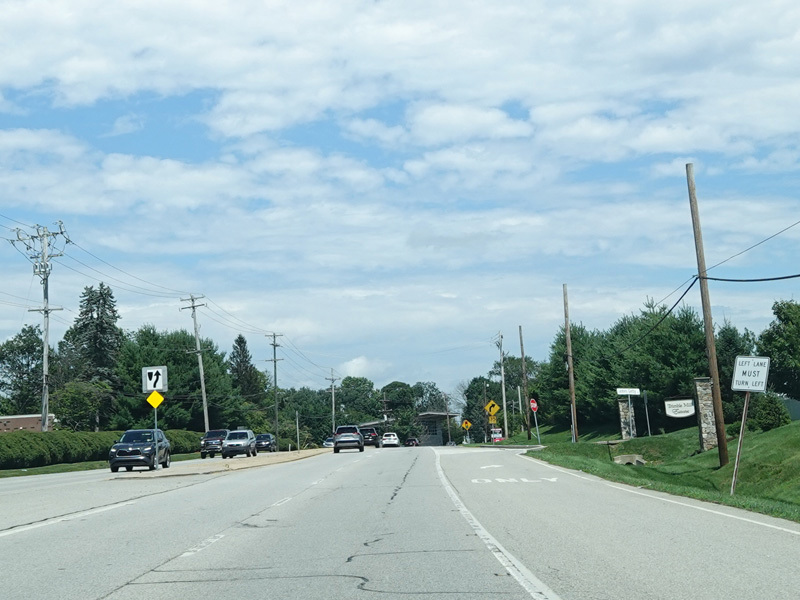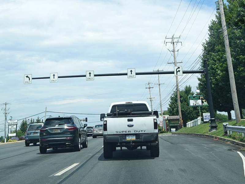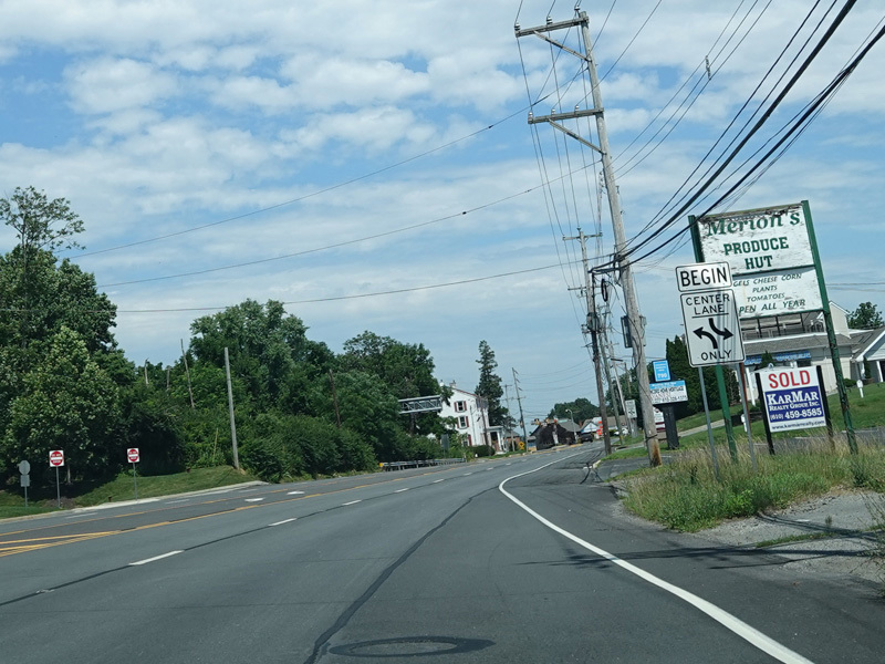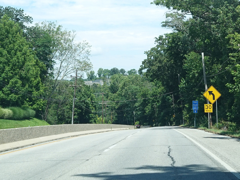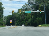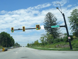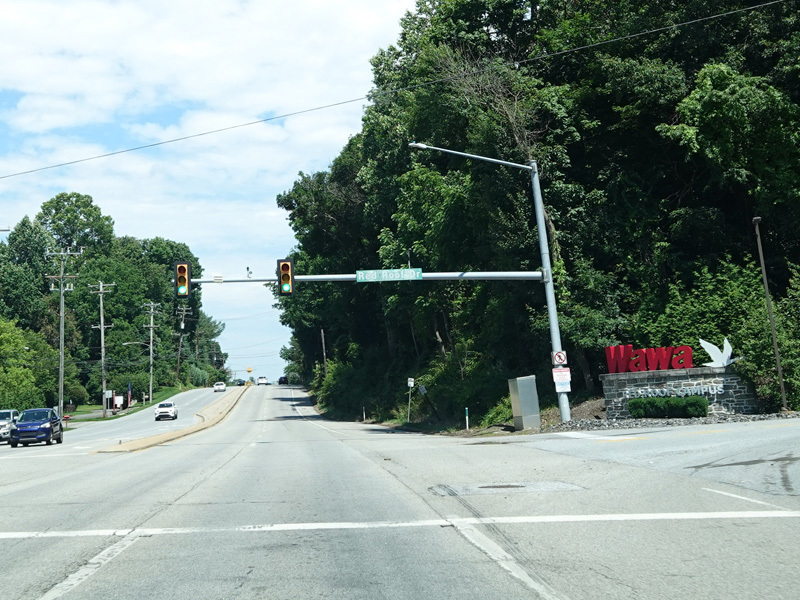 There is a traffic light at Pennell Road (PA 452). Turn left to go north or right to go south.
