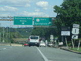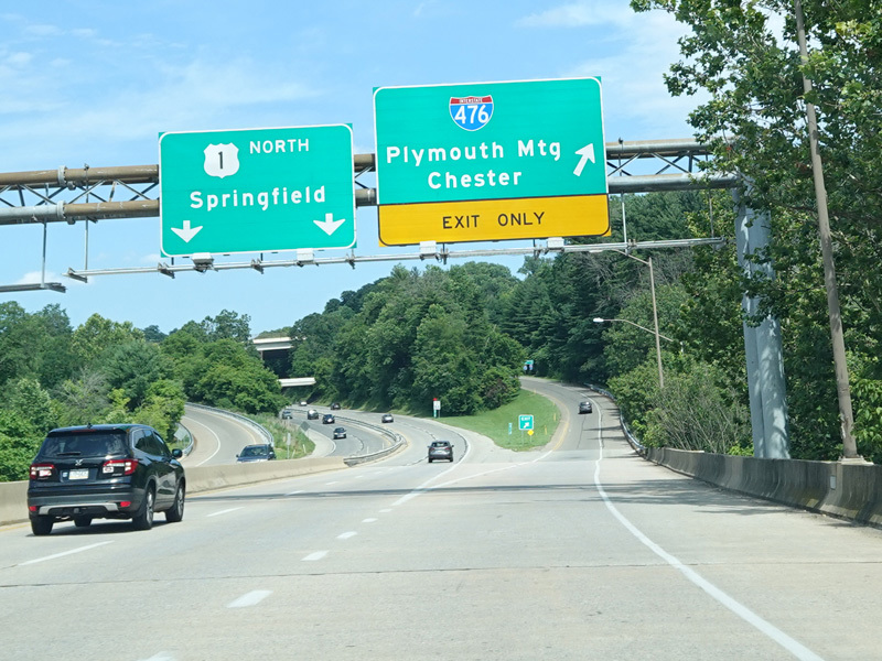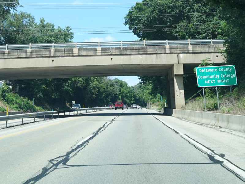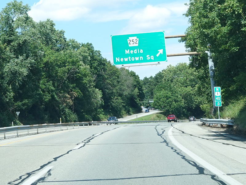 There is an exit on the left to head back south on Baltimore Pike. Bear right to continue north on the Media Bypass.