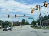 Baltimore Pike continues northeast through Media. There is a traffic light at Valley Road.
